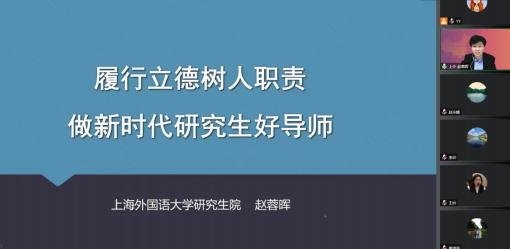 2022年113日晚7点,上海外国语大学研究生院院长、博士导师赵蓉晖教授应邀为我校全体研究导师开展了题为“履行立德树职责,做新时代研究好导师”的专题讲座。本次讲座是我校研究院组织开展的研究导师综合能提升专题培训的第⼀期活动,由研究院院、博士导师赵永峰教授主持。讲座以线上方式进行,全体研究导师参加培训,四川大学、西南大学等高校部分研究导师也应邀参加本次活动。