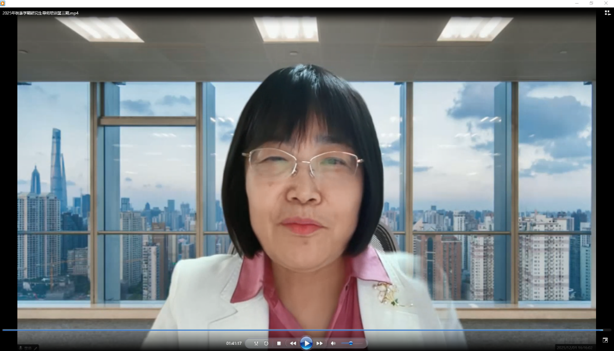 本次培训的主要目的,是帮助研究生导师们深刻理解“立德树人”在研究生培养中的内涵与要求,提升大家在学生心理健康支持方面的专业能力,推动学校研究生培养质量的整体提升。报告从4个维度作了分享,观点精准、内容丰富,针对性强,具有可操作性。李教授的报告为大家提供科学的心理工作方法,助力大家更好地支持研究生的成长与发展,让我受益颇多,感触颇深。同时,也更清醒地认识到,作为研究生培养的第一责任人,自己的学术指导、人格塑造和心理关怀对学生的成长起着决定性作用。
