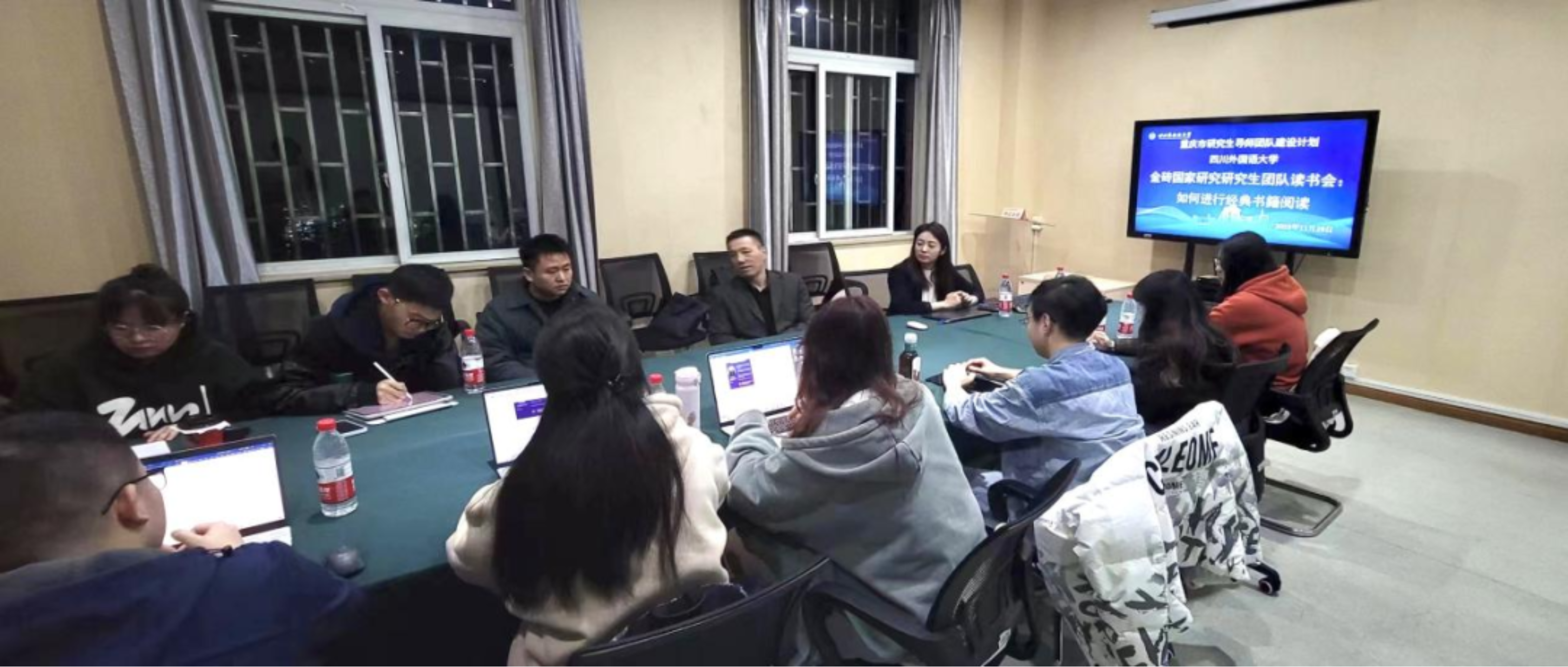 2023年11月29日晚上7点,重庆市研究生导师团队计划系列活动“如何进行经典书籍阅读”读书会顺利进行。此次会议由游涵老师主持,新闻传播学院院长刘国强院长、国际关系学院和俄语学院部分研究生参加了此次读书分享会。本次读书会主要内容是刘国强院长分享自己的阅读心得以及为同学现场解答一些读书时遇到的问题。