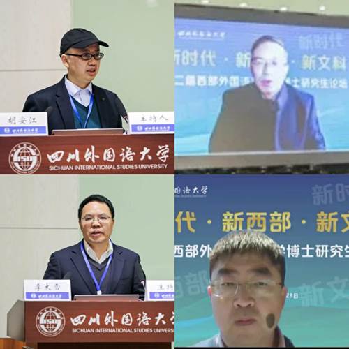 11月27日-28日,以“新时代•新西部•新文科”为主题的第二届西部外国语言文学博士研究生论坛在我校举行。来自全国外国语言文学领域的专家学者、青年教师、博士硕士研究生通过线上线下相结合的方式,聚焦新文科背景下外国语言文学研究生培养,共话新时代外语教育新使命,共创西部地区外语教育发展新格局。四川外国语大学校长董洪川,西安外国语大学副校长党争胜,四川外国语大学副校长祝朝伟、王仁强、严功军出席论坛。此次论坛通过四川外国语大学官方微信视频号、微博同步直播,吸引了3万余名观众线上观看。