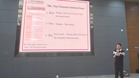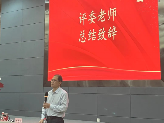 刘忠政老师对选手的精彩表现予以肯定,认为选手们的教案设计合理得当,现场表现充分展示了教师风采,有一定的课堂组织驾驭能力。但同时也提出了一些建议。首先刘老师强调教学要有激情,同时也要注意收放自如。其次,要区分授课和说课,注意角色的转换,说课面向的是评委老师,而授课面向的是学生。最后老师强调,口语表达很重要,作为老师更要注意一些单词发音的准确性。相信刘老师的总结性指导对大家来说一定受益匪浅。