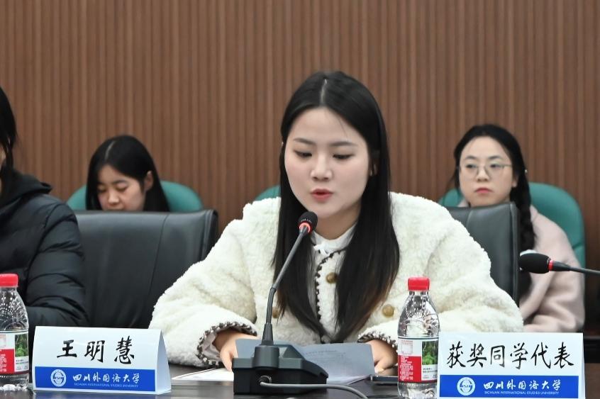 大赛一等奖获得者、国际关系学院研究生王明慧同学作为获奖代表发言,她结合自身科研经历,从论文选题构思、撰写打磨与心路历程等方面分享了参赛的宝贵经验与深刻感悟。王明慧同学表示,本次论文大赛不仅是学术能力的锤炼,更是沉心静气、自我精进的成长契机。