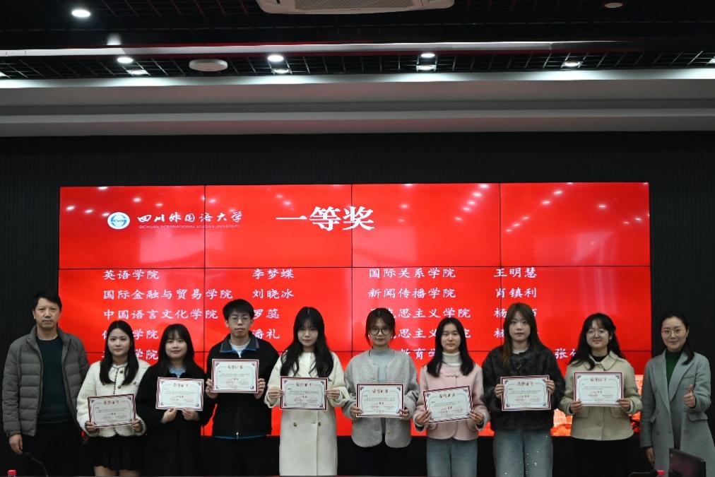 国际关系学院副院长周思邑、国际教育学院副院长刘耀、马克思主义学院教师曾利为三等奖获得者颁奖。
