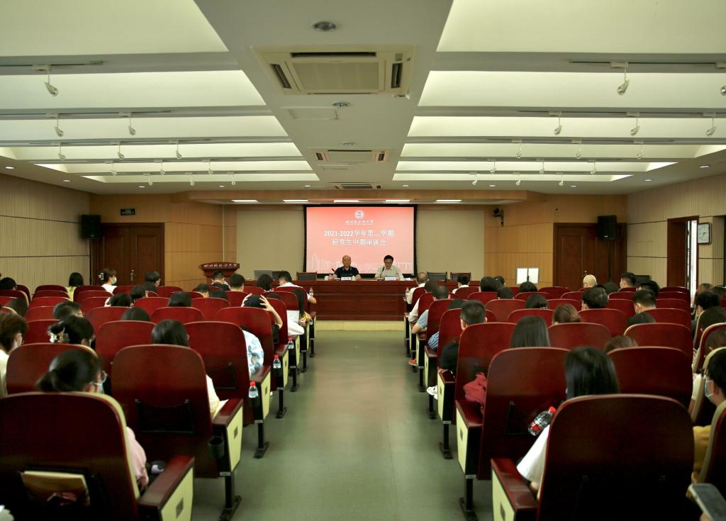 为搭建各培养学院、相关部门与研究生的沟通、交流平台,进一步优化资源配置,不断提高研究生教育教学和服务质量,2022年5月13日下午,研究生院在立德楼A609组织召开2021-2022学年第二学期研究生中期座谈会。本次座谈会由研究生院副院长刘兴兵主持,王仁强副校长,研究生院、学生处、后勤基建管理处、计划财务处、国际合作与交流处(港澳台办公室)、网络信息中心、图书馆、招生就业处、团委、保卫处等相关职能部门负责人,各学院负责人及研究生代表出席。
