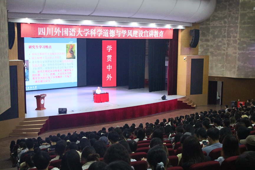 9 月 19 日下午,学校在东区大礼堂召开科学道德与学风建设宣讲教育报告会。副校长、博士生导师王仁强教授作题为“科研创新与研究生学业规划”的专题报告。研究生院副院长陈明志主持会议,2025 级近千名博士、硕士研究生参会。