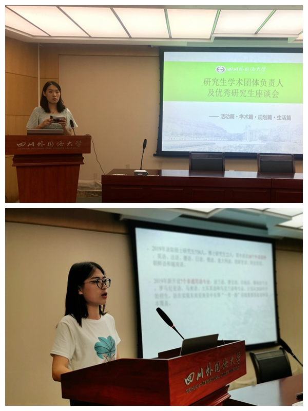 夏令营还组织了部分优秀研究生代表和研究生学术团体成员与营员们分享了在川外、在重庆的学习生活以及研究生学术团体的各种学术活动,并现场为各位营员答疑解惑。