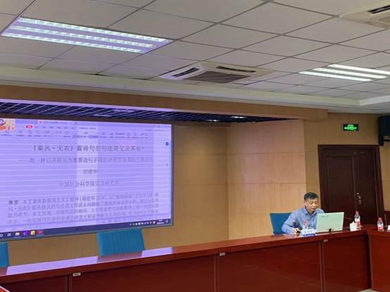 雷竞技比分界面研究与认知诗学论坛(第141期)学术活动于2021年5月14日星期四下午三点半在立德楼C517举行。本次活动特邀中国社会科学院胡建华教授作题为“《秦风· 无衣》篇诗句的句法语义及其他 ——对一种以并联法为重要造句手段的动词型语言的个案分析”的学术讲座。讲座由我校赵永峰教授主持,我校众多青年教师和博士生、硕士生聆听了本次讲座。